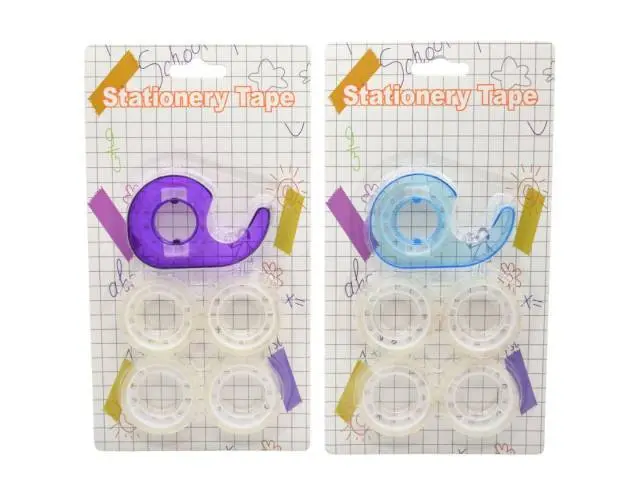 Cinta adhesiva x 5 unidades con cintero.Medidas del empaque: 22x12cm.Varios colores. Cinta adhesiva transparente.En blíster.