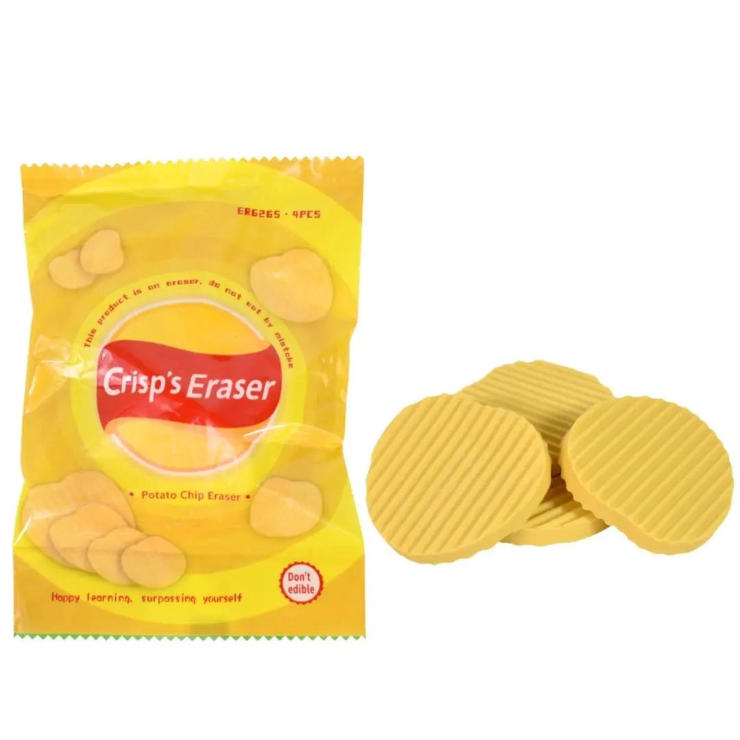 Gomas de borrar con formas de papas fritas.Contiene: 4 unidades.Medidas: 4cm.En bolsa.