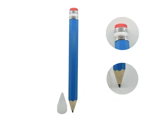 Lápiz grande de madera con goma.Medidas: 35x2.5cm.Con goma y tapa.
