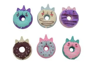 Set de gomas de borrar con diseño de donas. Presentación: caja. Medidas de la caja:12x6cm. Incluye 3 gomas de borrar tipo doñas con diseños y colores variados.